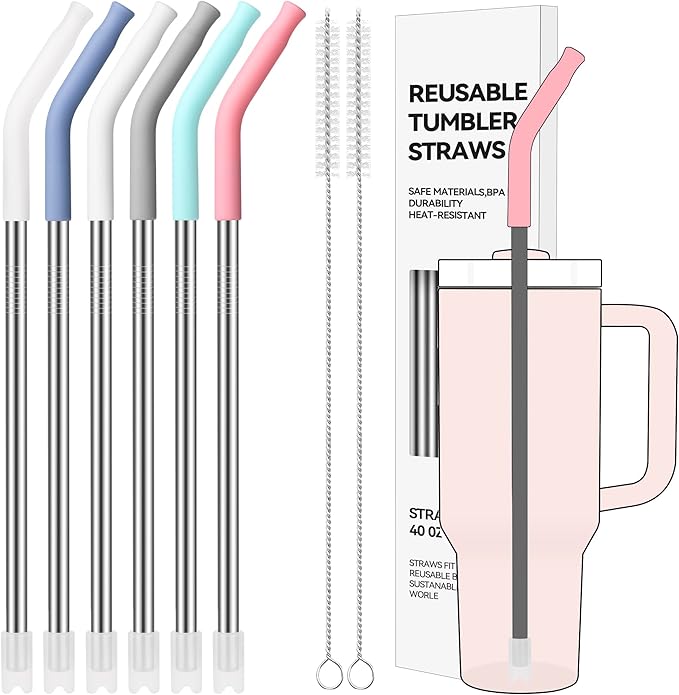 - FOR 40 OZ TUMBLERS - Package includes 6 x Straight Straw, 6 x Straw Tips, 6 x Bottom Silicone Tube, 2 x Straw Brush. Compatible with Stanley Quencher stainless steel tumblers (H1.0 and H2.0), Stanley 40 oz tumblers with handles and Simple Modern 40 oz tumblers, also suitable for other brands of 40 oz tumblers, Please confirm the size before purchasing
