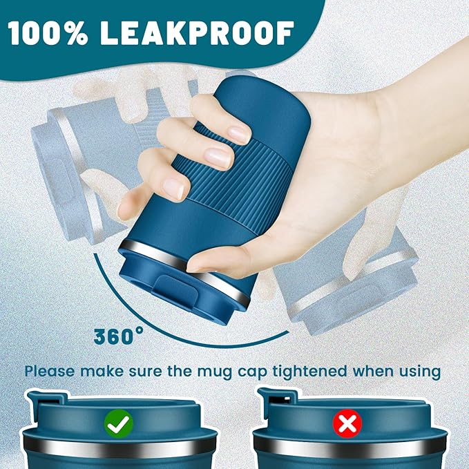 - Easy Clean & Comfort Grip: The large-opening design make insulated coffee tumbler mug easy to clean, the travel coffee mug comes with an eco-friendly one-hand flip-top snap, spiral silicone sleeve for easyily carry out, makes drinking with one hand comfortable and secure, sealing silicone strip and a screw lid design to prevent spills.