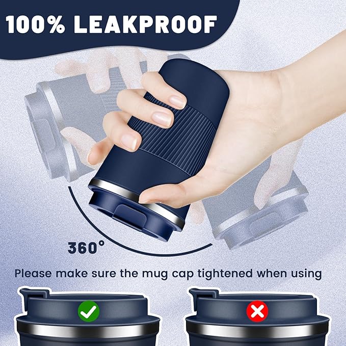 - Easy Clean & Comfort Grip: The large-opening design make insulated coffee tumbler mug easy to clean, the travel coffee mug comes with an eco-friendly one-hand flip-top snap, spiral silicone sleeve for easyily carry out, makes drinking with one hand comfortable and secure, sealing silicone strip and a screw lid design to prevent spills.