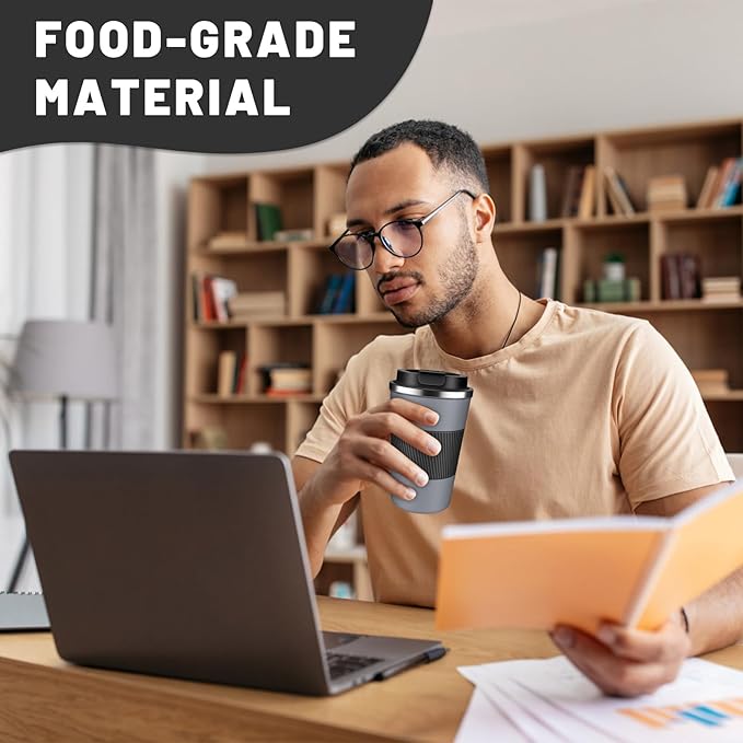 - Easy Clean & Comfort Grip: The large-opening design make insulated coffee tumbler mug easy to clean, the travel coffee mug comes with an eco-friendly one-hand flip-top snap, spiral silicone sleeve for easyily carry out, makes drinking with one hand comfortable and secure, sealing silicone strip and a screw lid design to prevent spills.