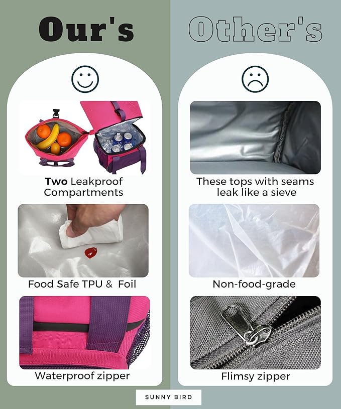 SUNNY BIRD Dual Compartment Lunch Bag Insulated Lunch Box for Women and Men (Purple)