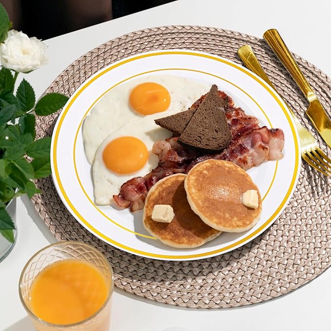 - SAVE ENERGY: These white and gold plates are disposable to make your life easier. You can save more time and energy for your family and friends