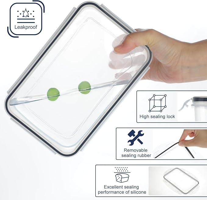 - Leak-Proof & Keep Fresh: Each lid of our plastic storage containers features silicone sealing strips and 4-sided latches designed to ensure an airtight, leak-proof and keep food fresh. You will never have to worry about food or liquid spills again when you use this containers for food. It will be great choices for taking their lunch or food to the office, school or on the go