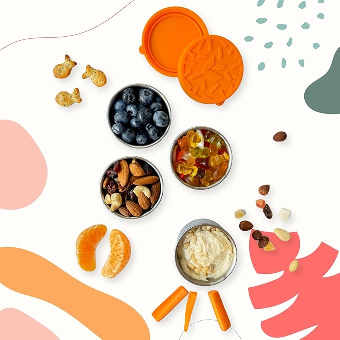 TAVVA 4 X 3 oz Food Storage Containers with Lids - Leakproof w/Silicone Lids - BPA Free - Dishwasher & Freezer Safe - Portable & Reusable - Small Stainless Steel Snack Cups Dressing Containers
