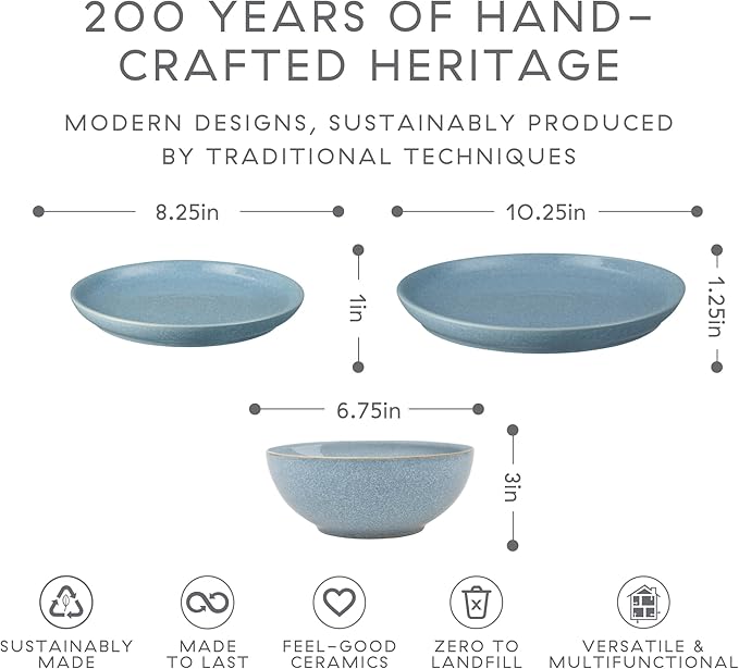 - STUNNING DESIGN: The Denby approach is simple; beautiful and practical tableware designed for modern life. And when modern life requires a no-fuss range of hard-wearing yet still beautiful Blue items, enter Denby Elements.