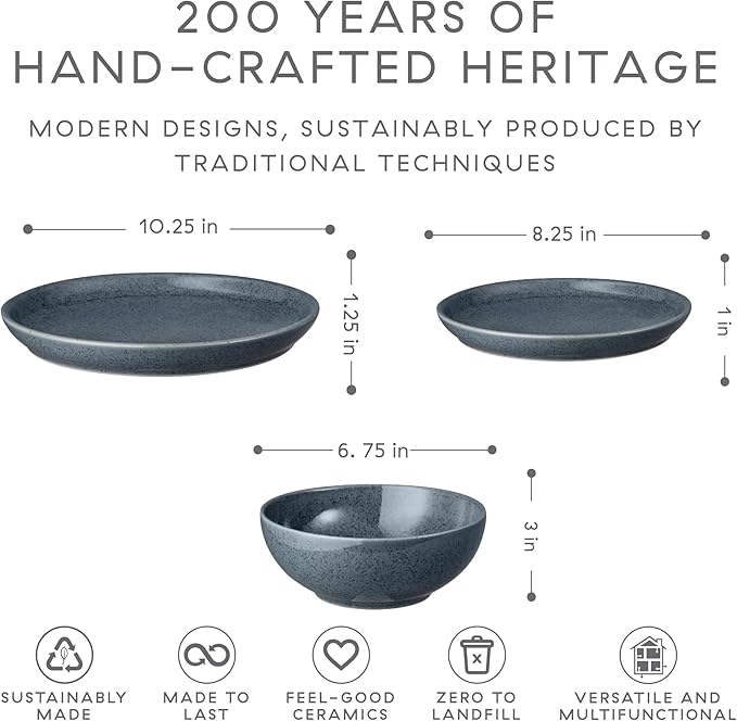 Denby - Dark Grey Speckle Dinner Set For 4-12 Piece Reactive Glaze Ceramic Stoneware Tableware Set - Dishwasher Microwave Oven Safe - Scratch Chip Resistant