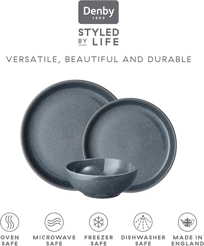 - DURABLE & VERSATILE STONEWARE: This dinner set has been expertly glazed to prevent chipping and enhance durability. Our ranges are versatile and multi-functional - perfect for everyday use or for special occasions - so a smaller number of pieces are needed. Such is the quality and durability of Denby that we are proud to offer a 10 year guarantee on our Denby stoneware ranges, giving you all the confidence you need to really love and enjoy your range.