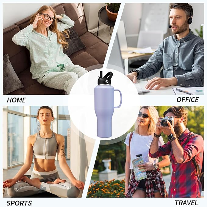 - √ SUPER COMBO & GLAMOROUS GIFT: Buy 40oz insulated tumbler with handle, get 8 accessories (1 x straw lid, 1 x auto spout lid, 1 x bottle holder carrier, 1 x shoulder strap, 1 x protective cup boot, 2 x straws, 1 x straw brush).