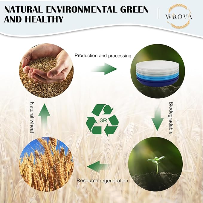 - ใ๐๐ง๐๐ซ๐๐๐ค๐๐๐ฅ๐ & ๐๐ข๐ ๐ก๐ญ๐ฐ๐๐ข๐ ๐ก๐ญใ- Wrova wheat straw plates are unbreakable and durable. No matter how many times dropped, it wonโt break into pieces. Kids will use these plate without worried. Lightweight and Stack-able are other advantages, really suitable for kitchen and camping.