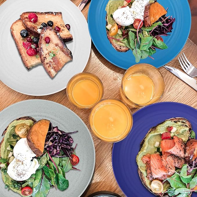 Wrova Wheat Straw Plates - 10 Inch Unbreakable Dinner Plates Set of 8 - Dishwasher & Microwave Safe Plastic Plates Reusable - Plates easy to clean for kitchen,camping.White-Grey-Blue, Island Series
