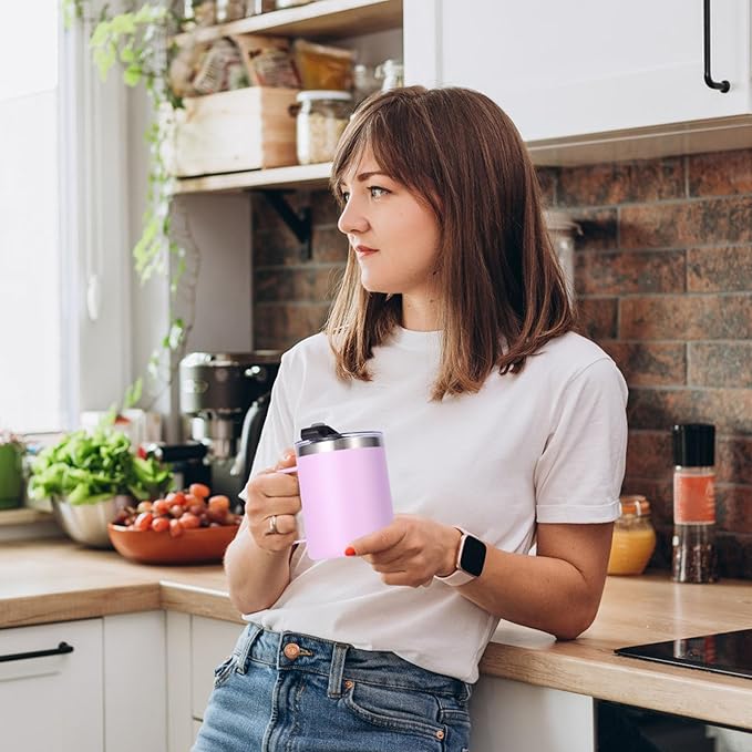Volhoply 12oz Insulated Leakproof Coffee Mug with Flip & Straw Lid Bulk 4 Pack,Double Wall Vacuum Stainless Steel Travel Tumbler Cup with Handle,Camping Mugs Keep Cold/Hot(Purple,4 Set)