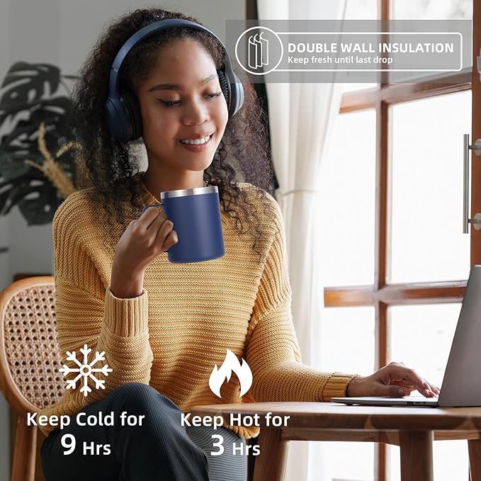 - 【Double wall insulation technology】Volhoply's mugs are made with double-layer vacuum insulation technology,which can keep your drinks warm for more than 3 hours and cold for more than 9 hours,both indoors and outdoors.You can enjoy your favorite drinks for a long time,keeping every sip fresh until the last drop!