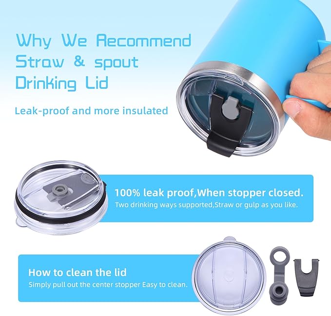 - 【Healthy and premium materials】The stopper is removable and each cup comes with a complimentary straw brush,can be cleaned thoroughly.Using high quality materials,inside and outside are made of food grade 18/8(304) stainless steel,lead-free,strong insulation,corrosion resistance.Durable,never rust.The straw spout and leakage stopper are made of food-grade rubber,BPA-free and odorless.