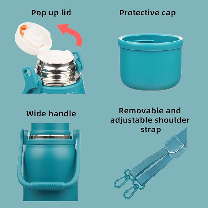 - BPA-Free Water Bottle with Carry Handle and Shoulder Strap: Has a silicone spout and a shoulder strap, all can removable for easy cleaning, comfortable handle makes it easy to carry, also making it an ideal choice for outdoor activities or everyday use