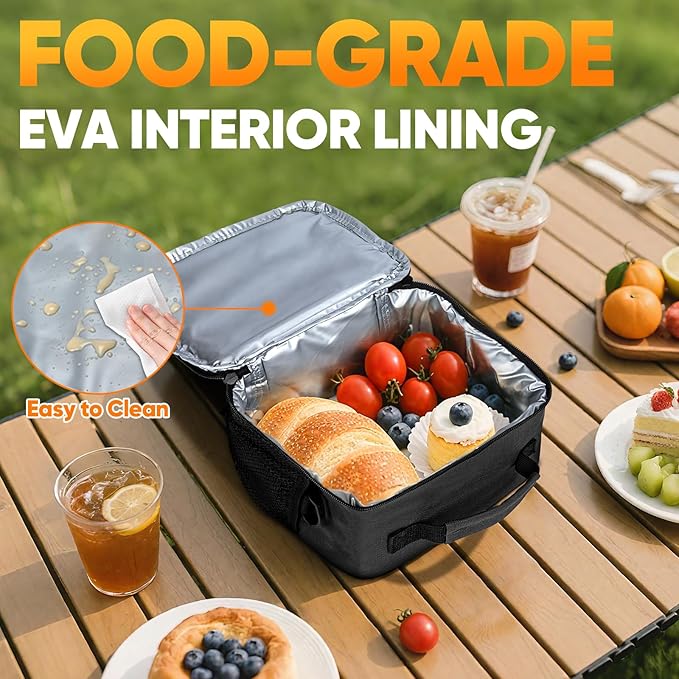 - [LEAKPROOF AND EASY TO CLEAN] Designed with a leakproof food-grade EVA interior lining, our insulated cooler bag prevents any spills or messes, keeping your belongings and surrounding items safe and clean. Additionally, the interior lining is easy to wipe clean, saving you time and effort when it comes to maintenance.