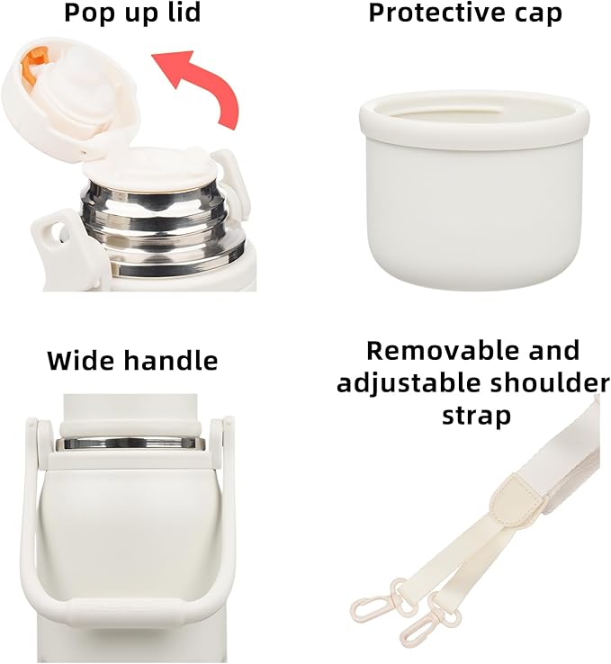 - BPA-Free Water Bottle with Carry Handle and Shoulder Strap: Has a silicone spout and a shoulder strap, all can removable for easy cleaning, comfortable handle makes it easy to carry, also making it an ideal choice for outdoor activities or everyday use