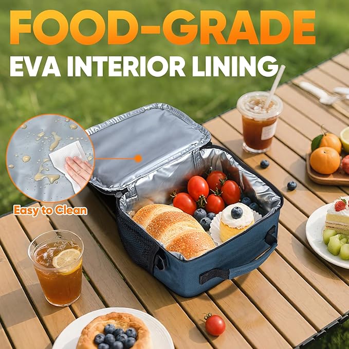- [LEAKPROOF AND EASY TO CLEAN] Designed with a leakproof food-grade EVA interior lining, our insulated cooler bag prevents any spills or messes, keeping your belongings and surrounding items safe and clean. Additionally, the interior lining is easy to wipe clean, saving you time and effort when it comes to maintenance.