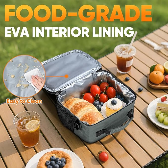 - [LEAKPROOF AND EASY TO CLEAN] Designed with a leakproof food-grade EVA interior lining, our insulated cooler bag prevents any spills or messes, keeping your belongings and surrounding items safe and clean. Additionally, the interior lining is easy to wipe clean, saving you time and effort when it comes to maintenance.