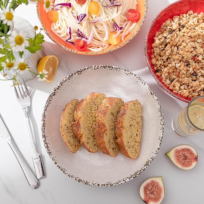 - Versatile Use: This Rustic pasta bowl is Lightweight and durable, it's suitable for salad, pasta, noodles, beans, rice, popcorn, pie and ice cream, not only as individual bowl use for daily family and large enough to sharing food during indoors and outdoors parties
