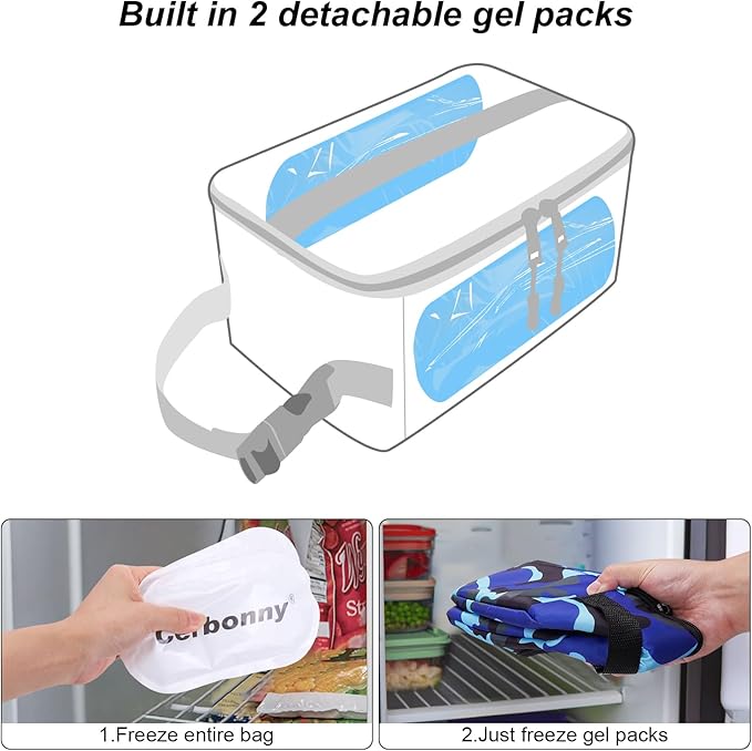 - BUILT-IN ICE PACKS: Built-in ice packs,just freeze mini cooler overnight,creates a fridge-like cooling system that keeps your snacks or drinks cool for hours.Up to 10 hours (depending on external temperatures).Fit for 3+.