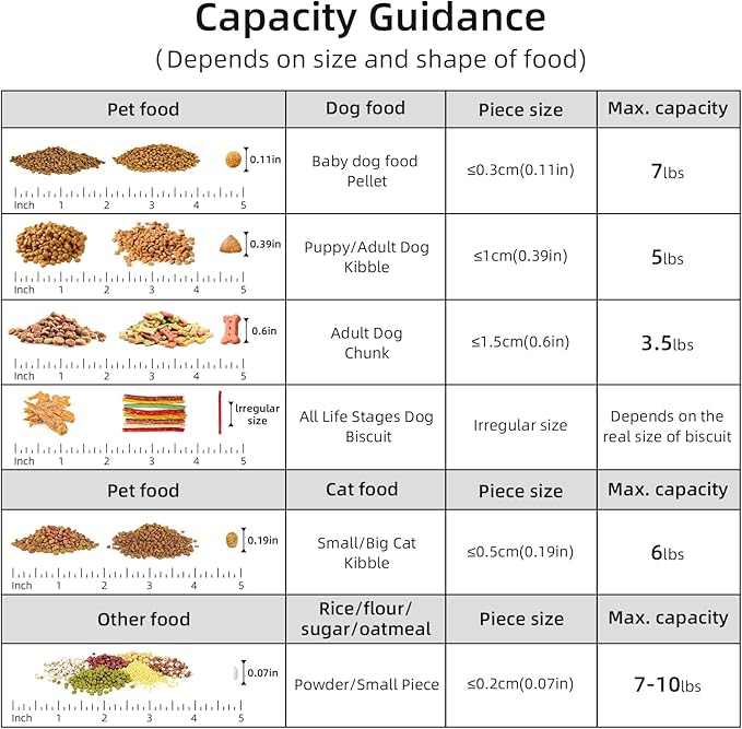 - MULTI-PURPOSE STORAGE : Our pet food container is suitable for storing dog food、cat food、bird seed、fish food、rice、 dry food、cereals、oats、flour and other large and small grains, as well as washing powder used at home. It is also a good choice.