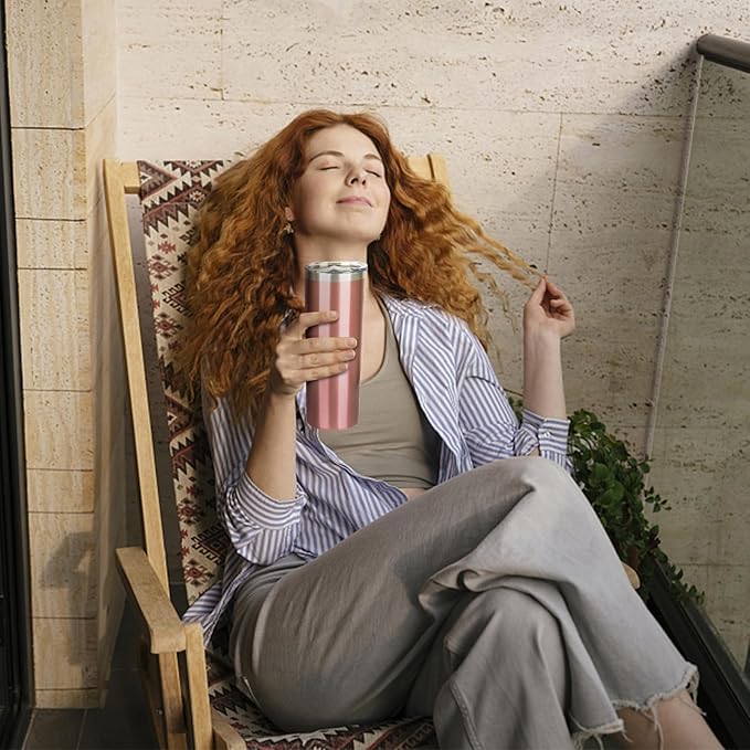 - ✅【BPA-Free Sliding Lid &Straw Friendly Design】 The lid of stainless steel skinny tumbler is BPA-free and Eco-friendly lid with gasket sealed to provide maximum splash-proof capability and the non-toxic lid will not affect the quality of the drink.What’s more,its’ drink hole on the top for easier sipping.