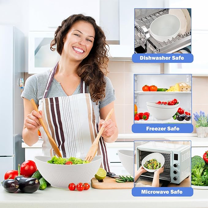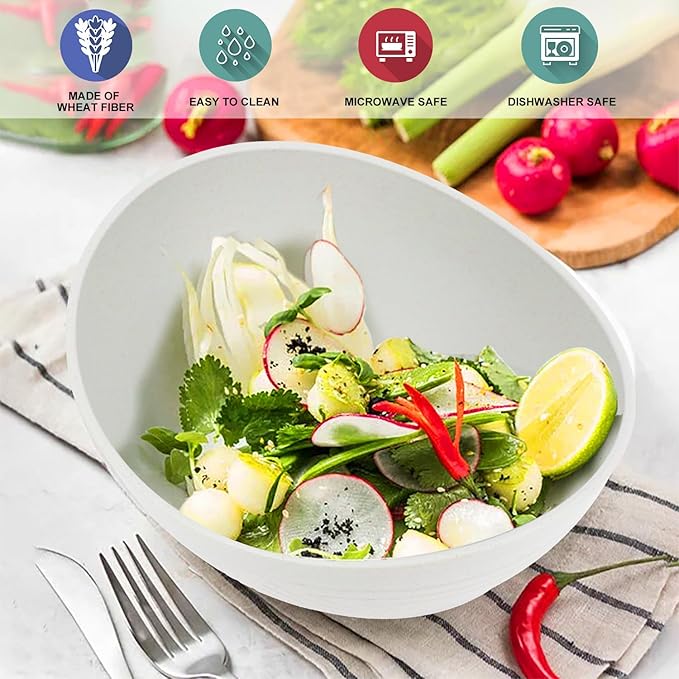- [Material from Wheat Straw]: Every serving bowls is constructed with organic wheat straw fiber and food-grade PP, ensuring it's BPA-free, non-toxic, and odorless.our large salad bowls protect your family's health with confidence.