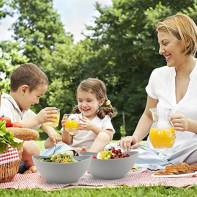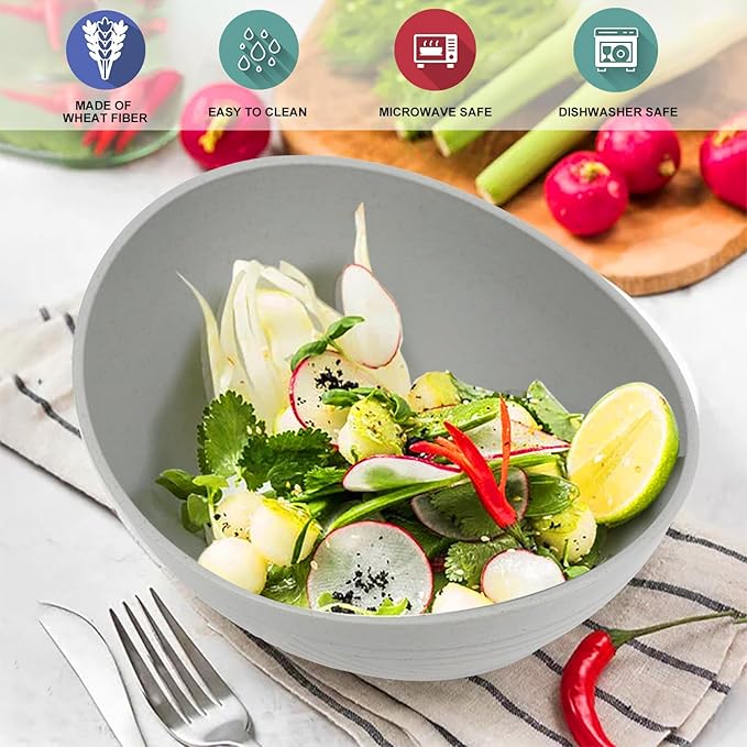 - [Wheat Straw Material]:These cooking bowls comes in 6 colors for your choice,every big salad bowl is constructed with organic wheat straw fiber and food-grade PP, ensuring it's BPA-free, non-toxic and odorless.our plastic serving bowls protect your family's health with confidence.
