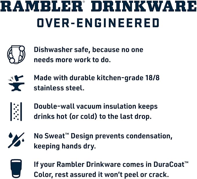 - DOUBLE-WALL VACUUM INSULATION - Keeps cold drinks cold and hot drinks hot until the last sip, and the No Sweat exterior