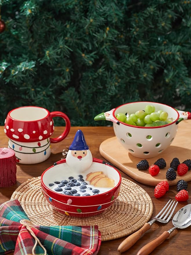 - 【 FESTIVE HAND-PAINTED DESIGN 】Whimsical mushrooms and gnome motifs bring a touch of storybook charm to your holiday décor. Perfect for creating a cozy, cheerful vibe on any table or countertop.