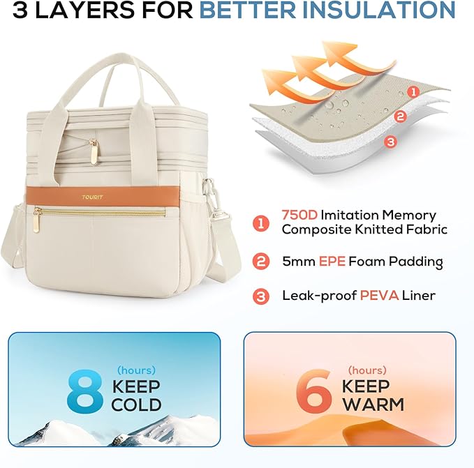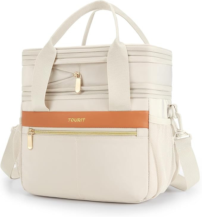 TOURIT Insulated Lunch Box Bag, Double Deck Leakproof Cooler Tote for Work Office Picnic, Expandable Lunch Container, Picnic