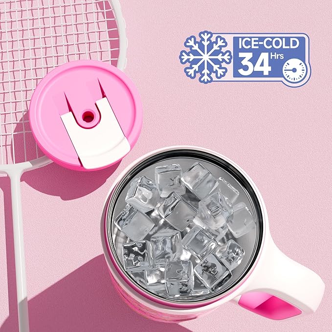 40 oz Tumbler with Handle, 2-in-1 Straw and Sip Lid, Leakproof, Dishwasher Safe, Insulated Stainless Steel Travel Coffee Mug, Keeps Cold for 34 Hours, Fits in Car Cup Holder (Pink Ladies)