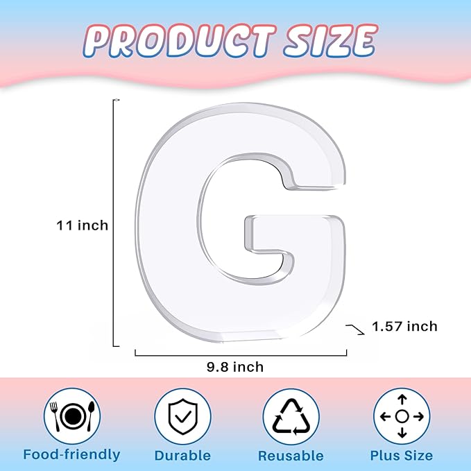 11" Acrylic Letter Charcuterie Box, Reusable Fillable Alphabet Number Shaped Form Tray for Birthday Anniversaries, Party Decorative Serving Plates Display Candy Cake (G)