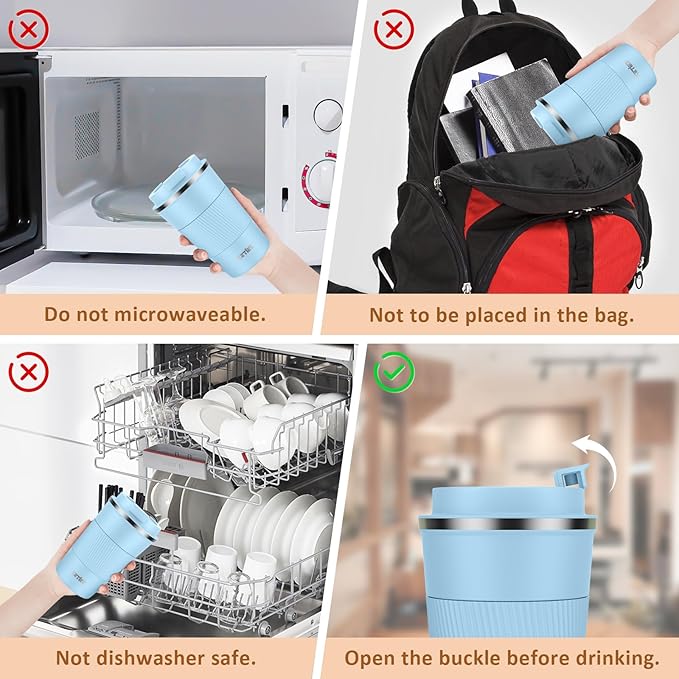 - 【 Excellent Performance at Many Occasion 】 380ml/12oz capacity is a portable travel mug when you are on the go. It is still lightweight even it is full of beverages. And the lid of this cup has a protruding part so it is easy to find the hole without looking when driving. A good ideal for indoor and outdoor use, such as home, travel and car.