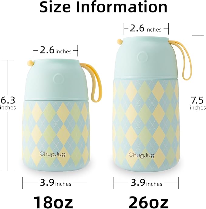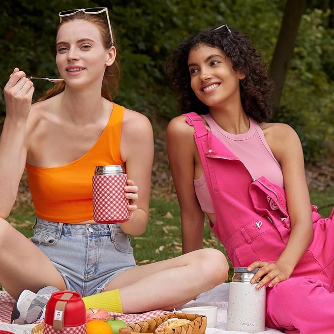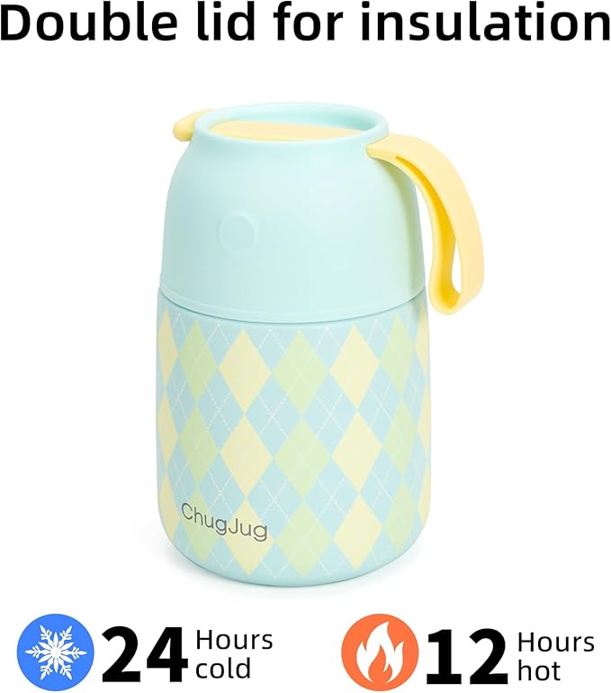 - ONE CONTAINER INCLUDES ALL,KID-FRIENDLY : The kids thermo food container is lightweight, not bulky, and easy to carry. It has a built-in foldable stainless steel spoon, and the lid can be used as a bowl. Whether it is camping, traveling, or taking it to the office or school. You only need one ChugJug soup thermo to have a meal, Just enjoy your delicious meals