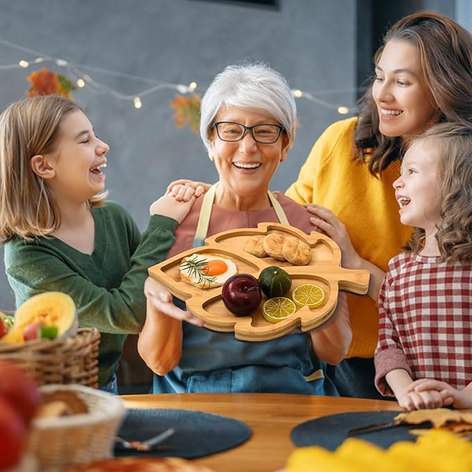 AWIZOM Leaf Wooden Serving Platter Thanksgiving Bamboo Serving Tray Wooden Snack Cheese Charcuterie Board Sectional Wood Fall Leaf Dish Plate for Fall Autumn Harvest Party Supply,11.02x14.56x0.79