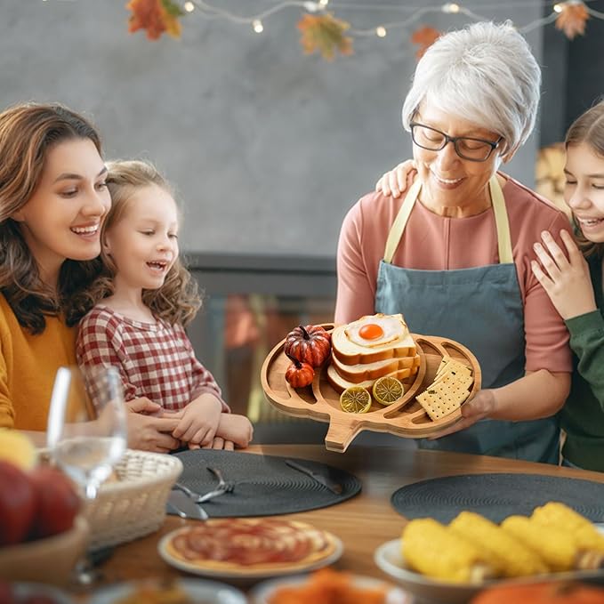 - Pumpkin Shape: The wooden dish plate is designed with a fall pumpkin shape, perfectly matching the theme of Thanksgiving and Halloween, it not only can be used as Thanksgiving decorations and Halloween decorations, but also can be used as a serving tray to place food, or as a tray to organize small items, beautiful and practical, it is an essential serving tray for fall festival parties