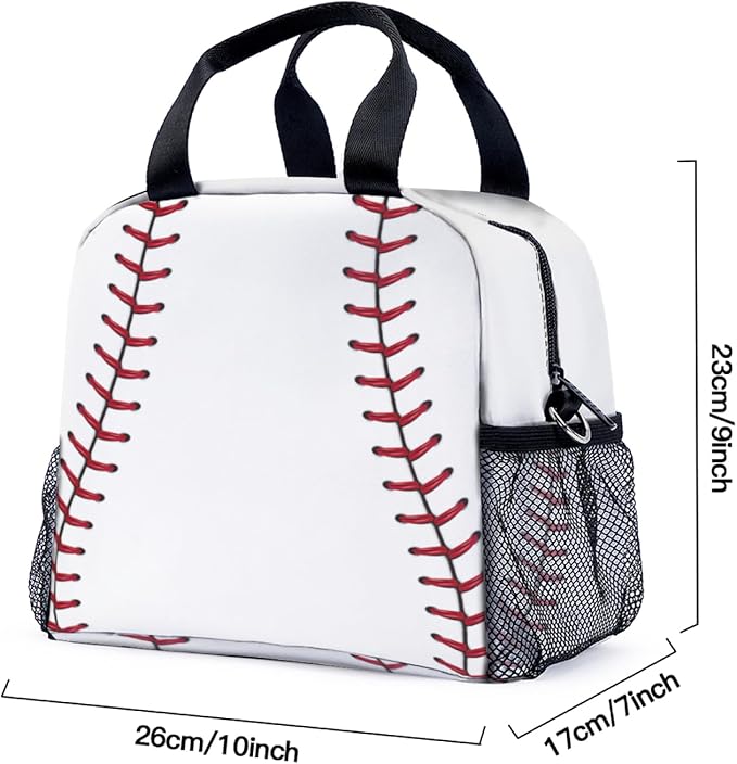Baseball Pattern Lunch Bag for Women Men Cute Large Capacity Thermal Lunch Tote Reusable Washable with Adjustable Shoulder Strap and Dual Large Mesh Side Pockets