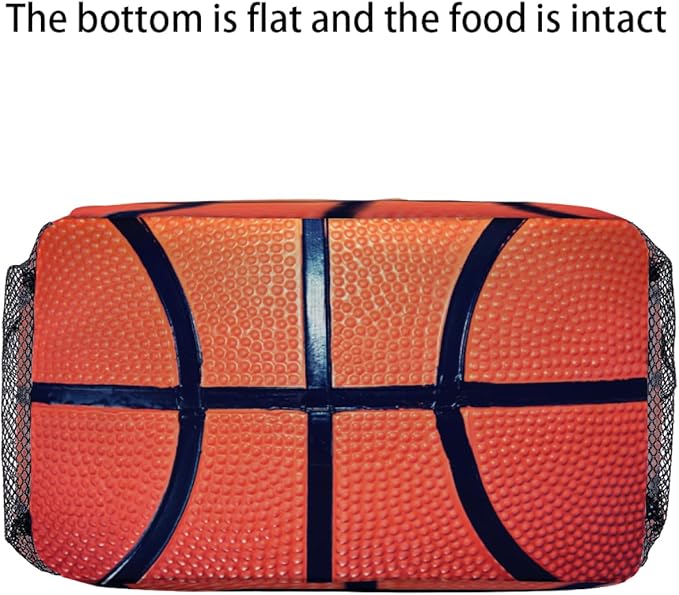 Basketball Lunch Bag for Women Men Cute Large Capacity Thermal Lunch Tote Reusable Washable with Adjustable Shoulder Strap and Dual Large Mesh Side Pockets