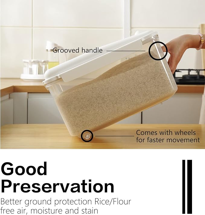 - š„ćDifferent Capacity for Family Useć-Our 5-25lbs flour dispenser boasts a spacious design, perfect for accommodating a generous amount of rice, making it an ideal choice for family meals or gatherings. Whether it's for everyday dining or entertaining guests, our rice container caters to your needs.
