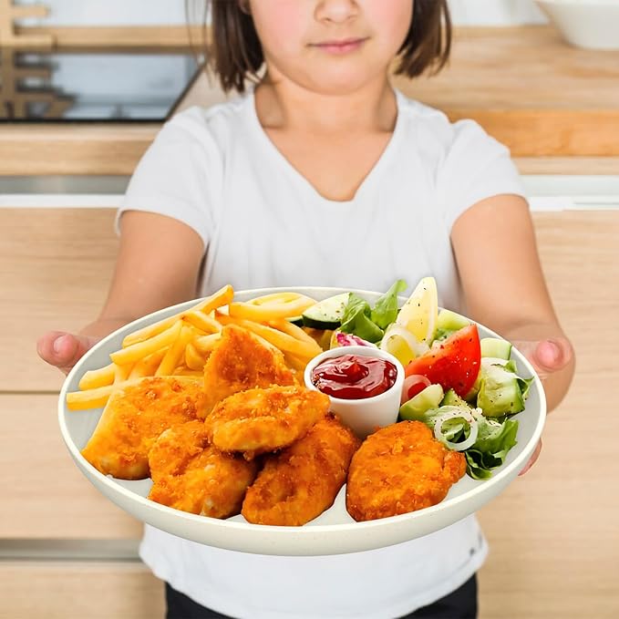 - ใ๐๐ฅ๐ญ๐๐ซ๐ง๐๐ญ๐ข๐ฏ๐ ๐๐จ๐ซ ๐๐ฅ๐๐ฌ๐ญ๐ข๐ใ- Each alternative plastic 11inches plate is constructed with organic wheat straw fiber and food-grade PP, 100% BPA free, non-toxic.