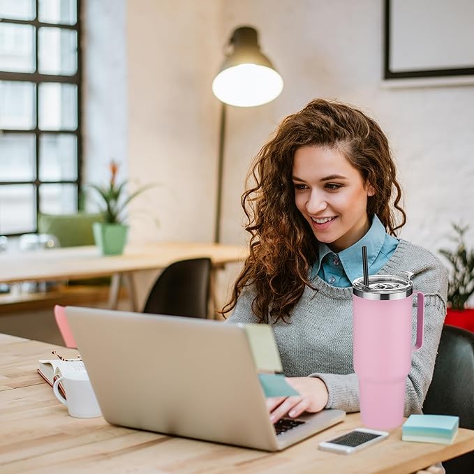 HASLE OUTFITTERS 40 oz Stainless Steel Tumbler with Handle, Vacuum Insulated Tumblers Bulk, Reusable Double Wall Travel Coffee Mug, Durable Powder Coated Water Bottle(Pink, 4)