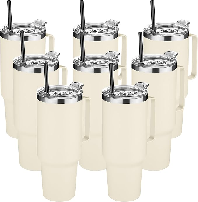 HASLE OUTFITTERS 40 oz Stainless Steel Tumbler with Handle, Vacuum Insulated Tumblers Bulk, Reusable Double Wall Travel Coffee Mug, Durable Powder Coated Water Bottle(Beige, 8)