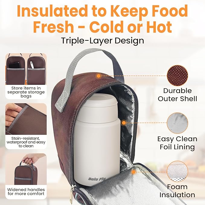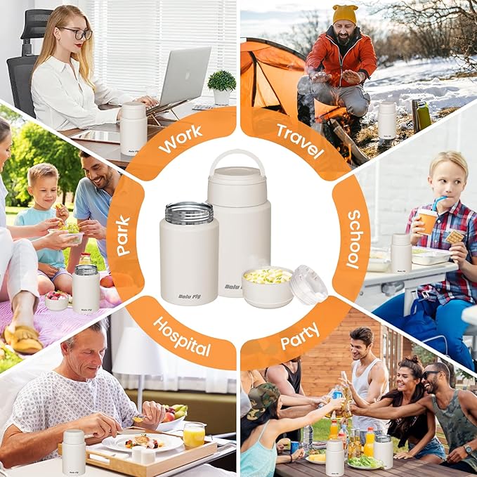 - 【MULTI-FUNCTIONAL FOOD THERMAL BOTTLE】Double-layer vacuum insulation technology effectively blocks temperature conduction and convection, keeping food warm for 10 hours and cold for 10 hours. This thermal bottle is suitable for storing hot and cold foods such as pasta, soup, oatmeal, cheese, hot coffee, and ice water. For better heat retention, preheat the insulated jar with hot water for 5 minutes before adding hot food.