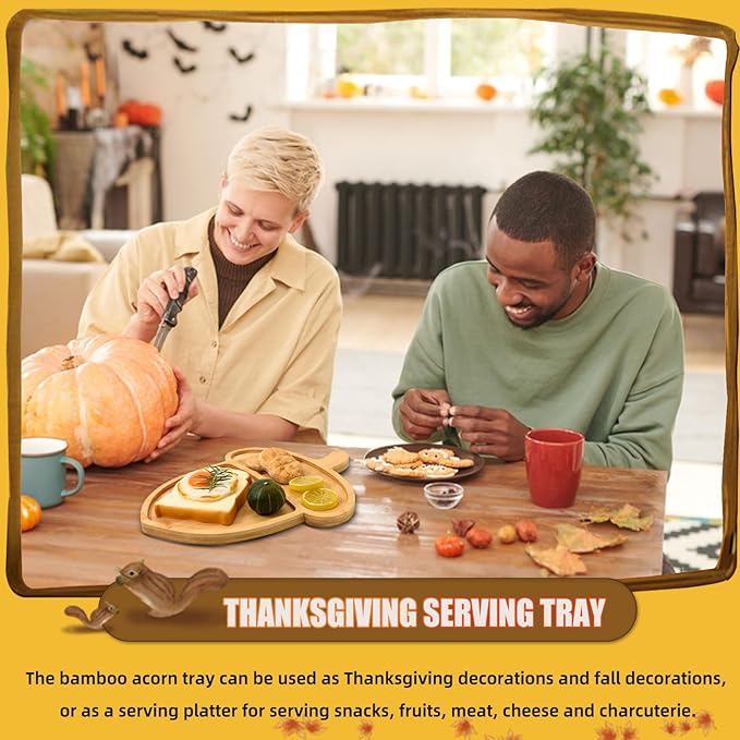 AWIZOM Acorn Shape Bamboo Serving Tray Thanksgiving Wooden Serving Platter Wood Snack Cheese Charcuterie Boards Wooden Acorn Dish Plate for Halloween Autumn Harvest Party Supplies,11.22x14.17x0.59