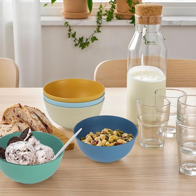 - [Vibrant Color]:Enjoy worry-free snacking with Wrova 10 oz cute bowls - the unbreakable solution to messy snacking. With 6 delightful colors -Orange,Light Blue,Yellow,Beige,Green,Navy Blue- these bowls will quickly become your kids' favorite for desserts, ice cream, and more without the fear of accidental spills or breakage.