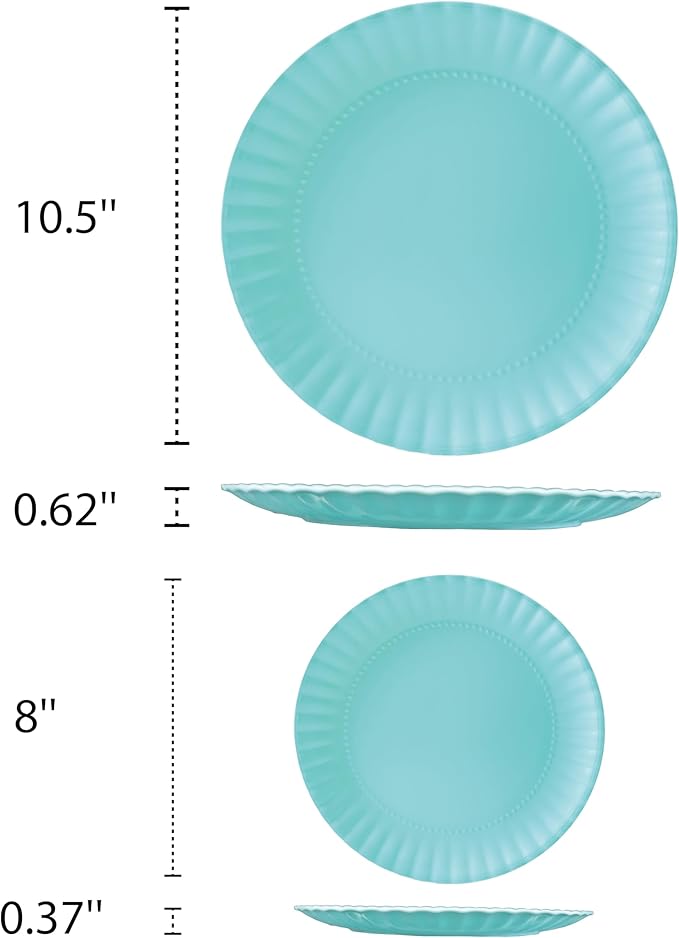 - Versatile for Any Occasion: This 8-piece plate set includes four 8" salad plates and four 10.5" dinner plates — perfect for picnics, BBQs, camping, RV trips, casual meals, and outdoor entertaining, lightweight and nestable for easy storage, yet durable enough for everyday use.