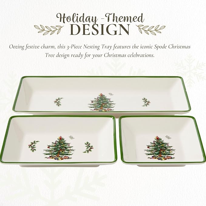 Spode Christmas Tree 3-Piece Dessert Trays, Serveware - Holiday Dinnerware & Decorative Tray, Holiday Winter Serving for All Parties & Occasions - for Snacks, Appetizers, Cookies