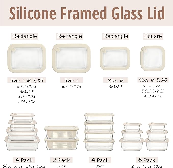 - ✅WHAT’S IN THE BOX: Each set comes with the Glass containers and their matching Silicone Framed Glass Lids. Rectangle Shape in 2 Pack Convenient Size : 50oz, Easy Cleaning, both Glass Containers, colanders and Lids are Dishwasher Safe.