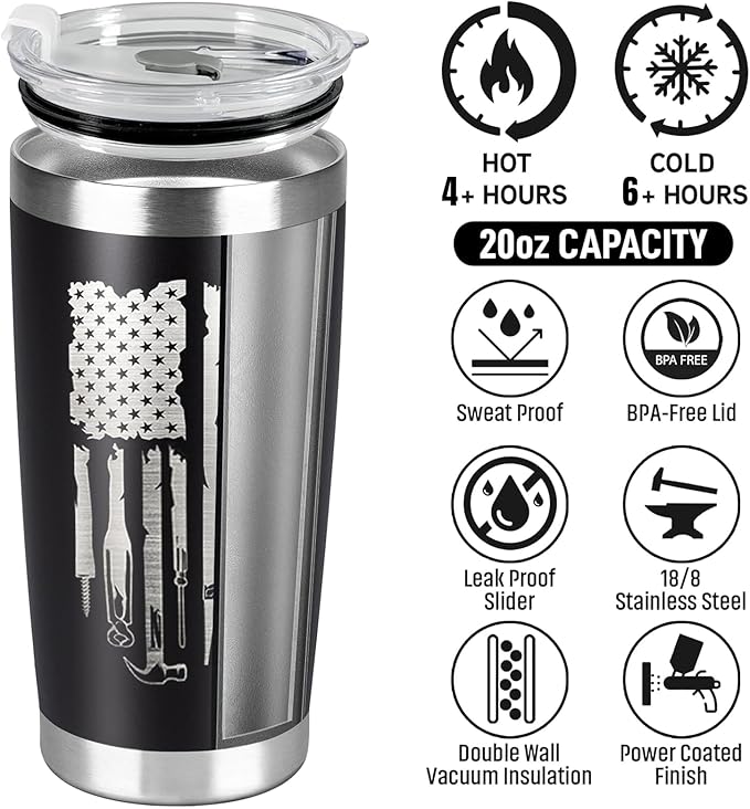 - DOUBLE WALL VACUUM INSULATION – Ideal Fathers Day Gifts : This 20oz tumbler features double-wall vacuum insulation to keep beverages at the perfect temperature for hours, whether hot or cold. It's perfect for dads who enjoy their morning coffee or an evening drink, making it an ideal choice for fathers day gifts or everyday dad gifts.